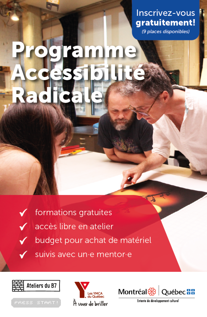 Le Bâtiment 7, le YMCA et Press Start sont fiers de vous offrir la possibilité d’être sélectionné pour le programme Accessibilité Radicale.